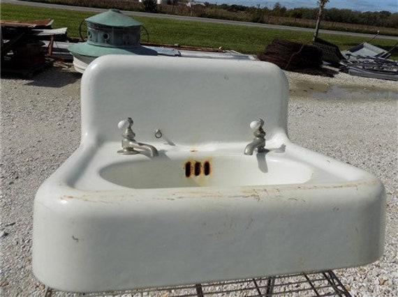 Antique 52 high back cast iron white porcelain vtg kitchen farm sink 342 20e. Which materials are antique sinks made of. Vintage antique kitchen farm sinks.