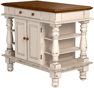 Americana kitchen island antique white finish step into a comfortable surrounding that is americana. Today there are a variety of styles available whether you choose a kitchen island with seating a kitchen island without seating or a kitchen island cart. Distressed oak finished top and matching oak finished knobs complete the look.