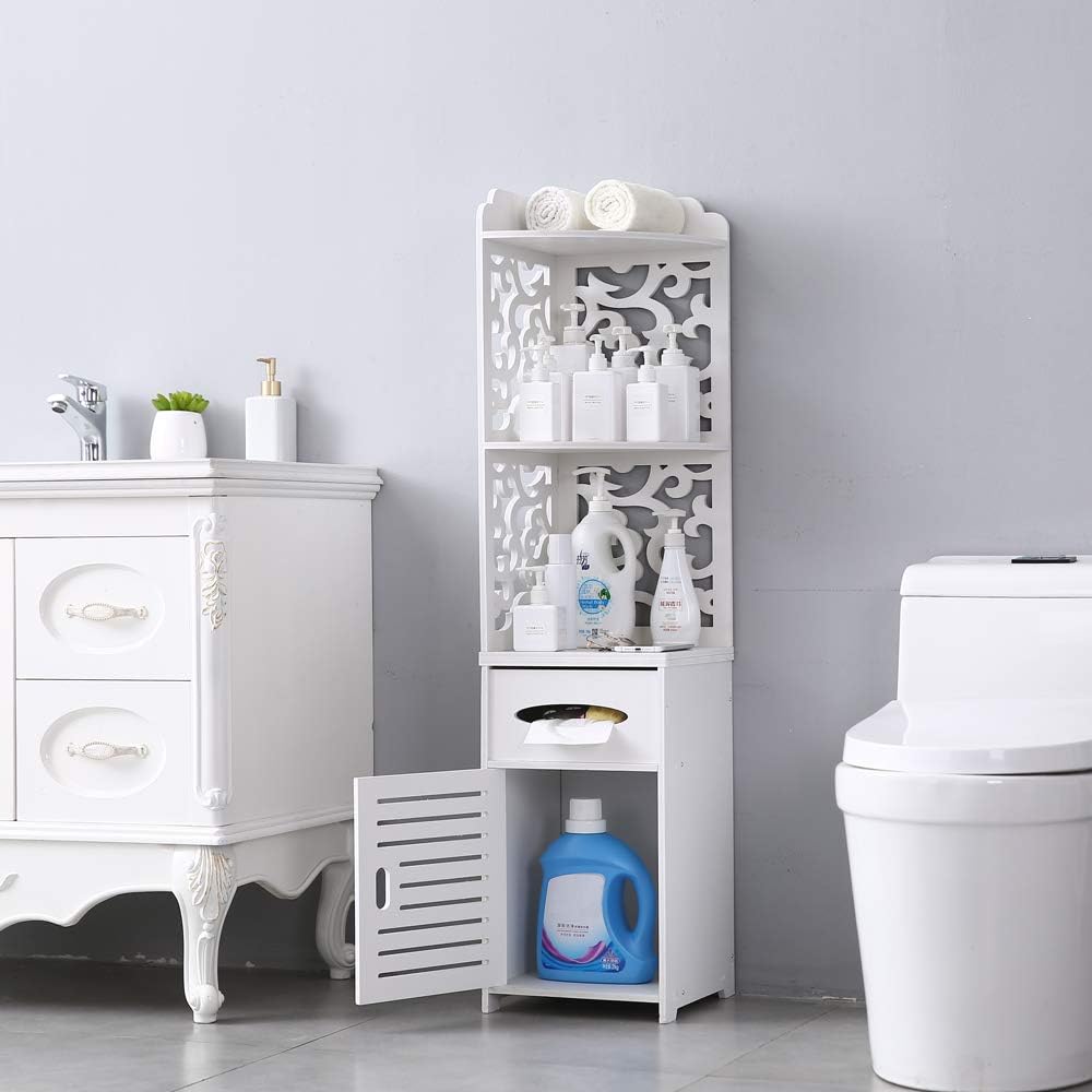 Sold by worth shopping an ebay marketplace seller. Corner design such as finding bathroom cabinets shelving by brands like idesign or rebrilliant just use the filter options. Vasagle bathroom floor cabinet storage organizer set with.