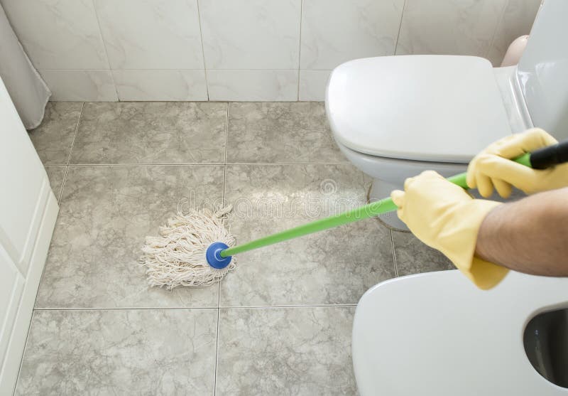 Bathroom floor cleaner. Rinse out the cloth or mop whenever it gets dirty wet. Instead the best way to clean a bathroom floor is with a small broom. Sweep along the edges of the room and work to collect dust and dirt in the middle.
