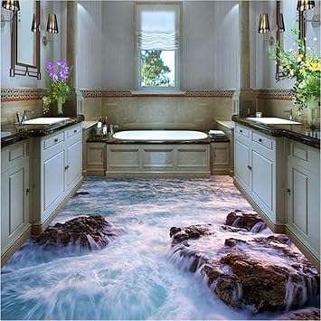 Bathroom floor mural. 3d floor designs can visually solve many problems of the room interior because of the unique aesthetic qualities. Printed in vibrant colours with incredible attention to detail theyre hyper realistic and are works of art for the floors beneath your feet. Mznm custom 3d floor mural wallpaper sea water wave bathroom 3d floor mural pvc waterproof self adhesive vinyl wallpaper home decor 120x100cm.