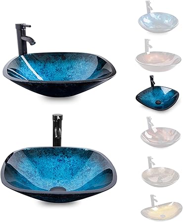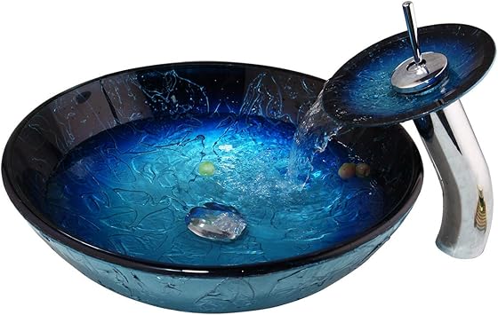 Cela permet des choses telles que. Vigo glass vessel bathroom sink in oceania blue and linus faucet set in brushed nickel 194 90. Style selections 3025 in navy single sink bathroom.
