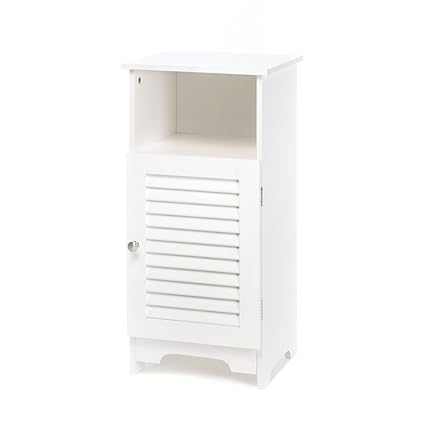 The raised panel door style design help bring style and sophistication to your bathroom while the white color matches many home interiors. Find a simple wall shelf to add a touch more surface space or select roomy bathroom furniture with hidden shelves that lend a spa like a look and feel. H white storage cabinet features durable construction for furniture quality bath storage.