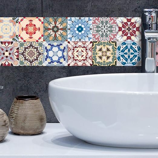 Alwayspon waterproof vinyl wall tiles sticker for home decor self adhesive peel and stick backsplash tile decals for kitchen bathroom decor 6x6inch 10 pcs 38 out of 5 stars 132 1499 14. Briketo tiles are perfect for renters renew the surface as you like and return it just the way you received it without having to invest much money. Tile stickers for decoration for floor or wall fez style easy way to customize your bathroom kitchen or backsplash pack of 10 skumgt homeartstickers 5 out of 5 stars 778 683 759 759 10 off favourite add to see similar items more like this.