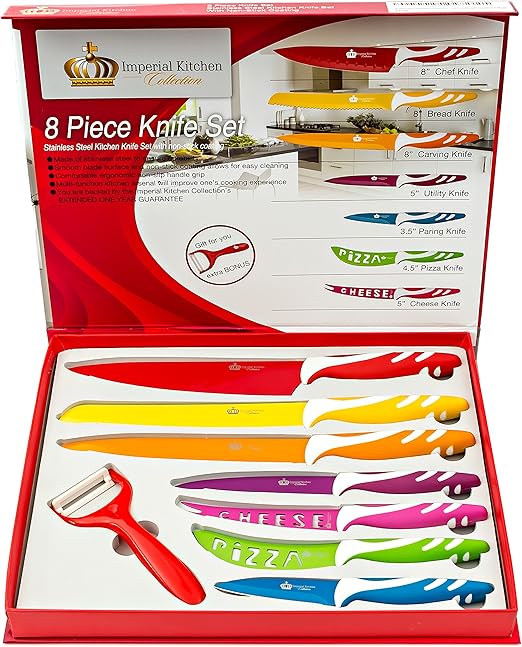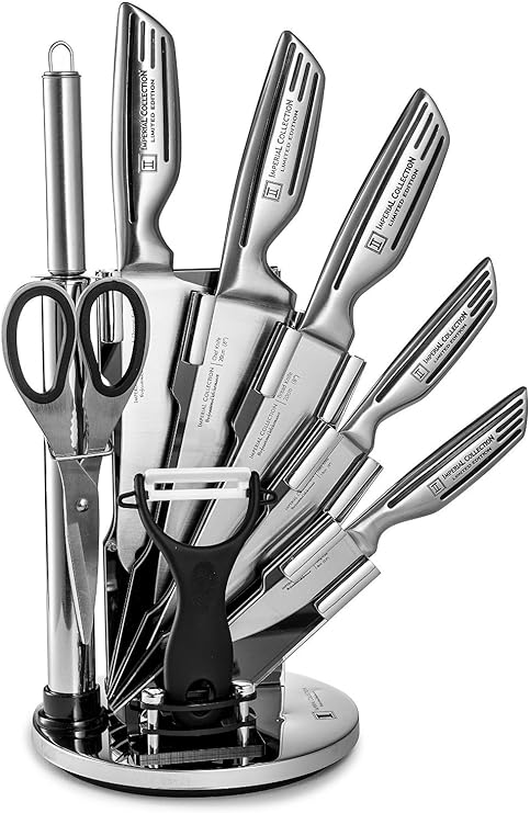 Imperial collection kst12 9 piece stainless steel kitchen cutlery knife set with rotating block 5655 in stock.