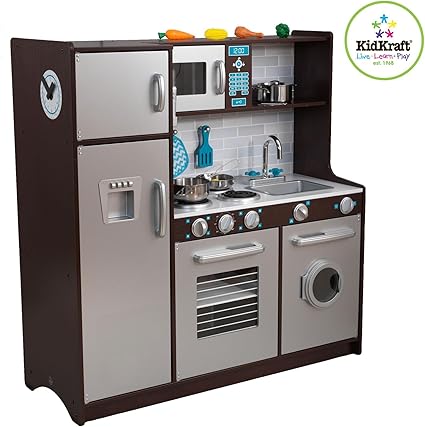 Kidkraft uptown espresso kitchen amazon exclusive kidkraft ultimate corner play kitchen with lights sounds espresso 53365 kitchen playset accessories toys stainless steel cookware pots and pans set cooking utensils apron chef hat and cutting play food for kids toddler and boys girls educational learning tool. Find the best in toy kitchens and kids kitchen accessories for the perfect kids play room. Lensemble patisserie de kidkraft a tout ce quil faut pour que les petits chefs puissent creer de veritables delices.