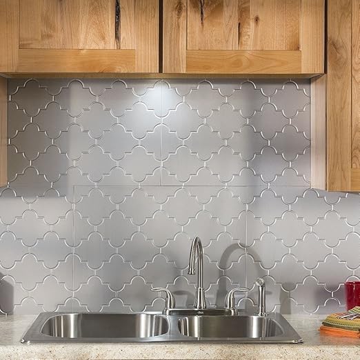 Kitchen backsplash panels. No kitchen makeover is complete without adding a backsplash. Options for decorative backsplash panels range from metal like tin backsplashes to glass tile and more along with stunning patterns and colors to choose from. Fashion meets function with backsplash panels from lowes.