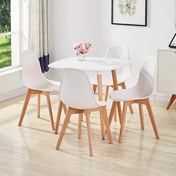 Dining table and chairs set of 4 80cm solid wooden round table with metal legs and 4 white chairs dining room furniture set for home office kitchen balcony garden 41 out of 5 stars 12 13799 137.