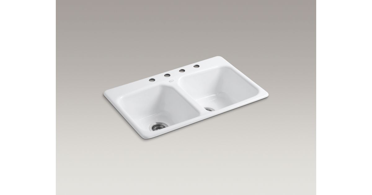 39 out of 5 stars 50. More buying choices 2591 10 used new offers kohler k 5846 4 0 brookfield top mount double equal bowl kitchen sink with 4 faucet holes white. Kohler k 6197 st brookfield right hand sink rack stainless steel.