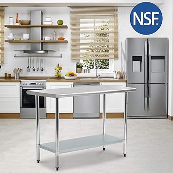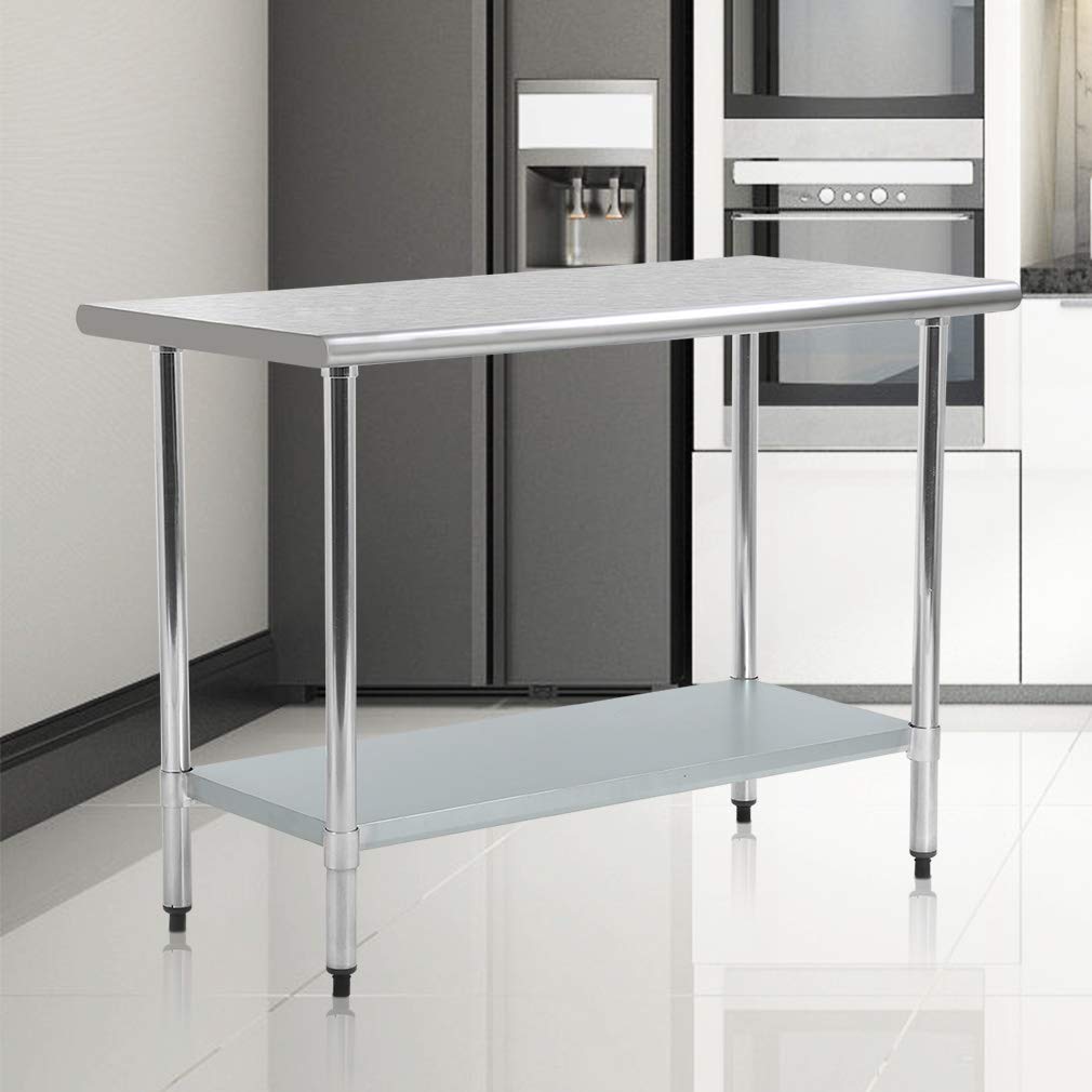 No matter what type of foodservice establishment you operate its important to outfit your kitchen with commercial work tables so you can prepare entrees sides and desserts. Stainless steel table for prep work 24 x 48 inches nsf commercial heavy duty table with undershelf and backsplash for restaurant home. Fdw kitchen work table stainless steel metal commercial nsf scratch resistent and antirust work table with adjustable table toot24 x 48 inchs.