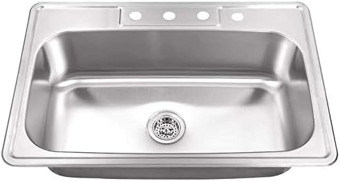 Single basin kitchen sink 33 x 22. Blending with a variety of kitchen styles this verse stainless steel sink offers a wide deep bowl for ample workspace. The beautiful topmount drop in sink features a single bowl coated with a stunning brushed stainless steel finish. Topmount drop in single bowl kitchen sink constructed by heavy duty 16 gauge stainless steel ideal for practical kitchen use.