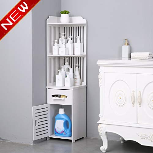 Tall corner bathroom cabinet. 13173 131. H floor cabinet in white. Free shipping by amazon.
