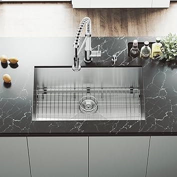 The highly functional 16 gauge 304 series stainless steel vigo sink has a 9 78 depth to accommodate even your largest pots and pans making every clean up easier. With its angular zero radius corners the vigo 32 ludlow stainless steel undermount kitchen sink adds a modern convenient touch to any updated kitchen. Matte stone sinks 50 stainless steel sinks 27.